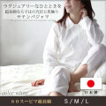 スーピマ超長綿サテンのレディースパジャマ。 世界三大コットンのひとつ、スーピマの超長綿100%をサテン織りにすることで、シルクのような美しい光沢、とろけるような滑らかな肌触りに仕上がりました。 一般的なパジャマに比べ、35%程度軽く、超長綿ならではのドレープ性で肌にすいつくようにフィットしてくれるため、体温を逃がさず、春秋はもちろん、オールシーズン快適にお使いいただけます。 お誕生日や母の日、敬老の日など、記念日のギフトとしてもご利用ください。 こちらの商品はセミオーダーメイドタイプのパジャマです。 袖丈・着丈・ズボン丈などをお好みの長さで仕立てます。 納期を約2週間程いただきますので、お時間に余裕を持ってご注文くださいませ。 創業80年の老舗工場で、職人が丁寧にお作りします。 生地の織り、染め、縫製まで全て安心の日本製 綿100% 上着:長袖(前開き)開襟 ズボン:長ズボン 80番手 280本 Sサイズ上下で230g 日本製 約2週間(セミオーダー) 長持ちさせるには、裏向きでネットに入れてからの洗濯がおすすめです。 タンブラー乾燥や塩素系漂白剤での漂白はお避けください。 洗濯後は、形を整えて日陰に干してください。