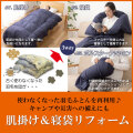 古くなった羽毛ふとん、肌掛けふとん&寝袋(シュラフ)にリフォームしませんか? 捨ててしまったらゴミになってしまうおふとんも、新しい形で生まれ変わらせれば便利なアイテムになります! 普段は肌掛けふとんとして使えますし、キャンプや災害などの緊急時には温かい寝袋としてお使いいただけます。 側生地:ポリエステル85%、綿15% 中身:お持ちの羽毛ふとんの羽毛を利用 抗菌・防臭加工、防汚加工、静電気抑制 SL:150×210cm 4×6マス 3cm立体 ダブルファスナー付き ご家庭の洗濯機で洗えます。 洗濯後は、形を整えて干してください。