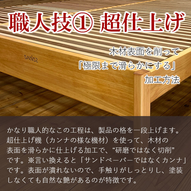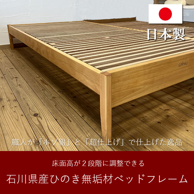 石川県産ヒノキ無垢材ベッドフレーム