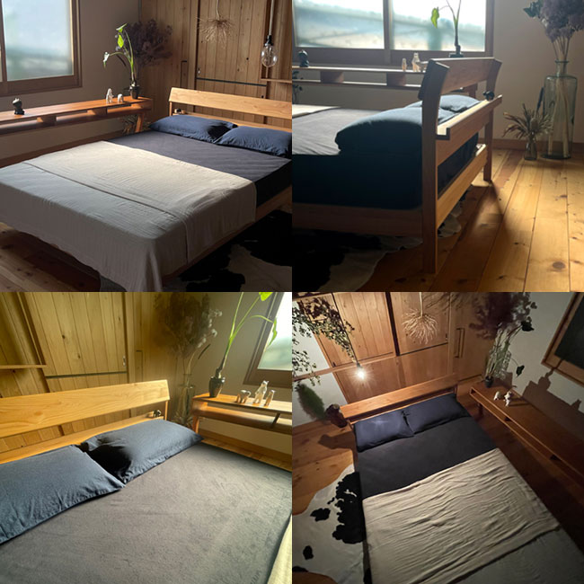 アルダー/ホワイトオーク/ウォールナット 無垢材ベッドフレームALDER/OAK/WALNAT BEDFLAME