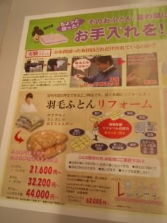 今日は羽毛ふとんのリフォームが目立ちました。