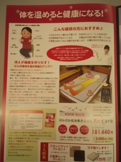 身体を温め免疫力アップの、ポカポカ温泉敷きパッドのリケアをお勧めしました。